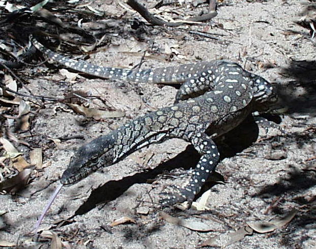 der Goanna auf etwa 1,5 Meter an mich herankam. - Man hatte mich schon