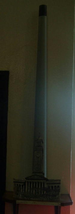 Der Lange Schornstein ueberragt ohne Probleme das davor abgebildete Rathaus von Brisbane.