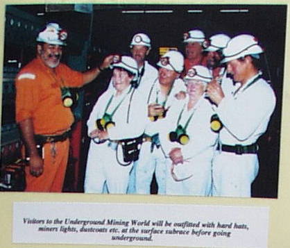 Man wird total eingekleidet und wird mit den "Kumpels" auf Level 19 (985mtr unter Oberflaeche!!!) in die Bleimine eingefahren. Dort wartet ein "Toyota" 4WD auf die Besucher und man faehrt einige Kilometer in der sehr warmen Umgebung und kann unter Umstaenden den Bohrarbeiten und dem normalen Leben der Kumpels unter Tage zusehen.